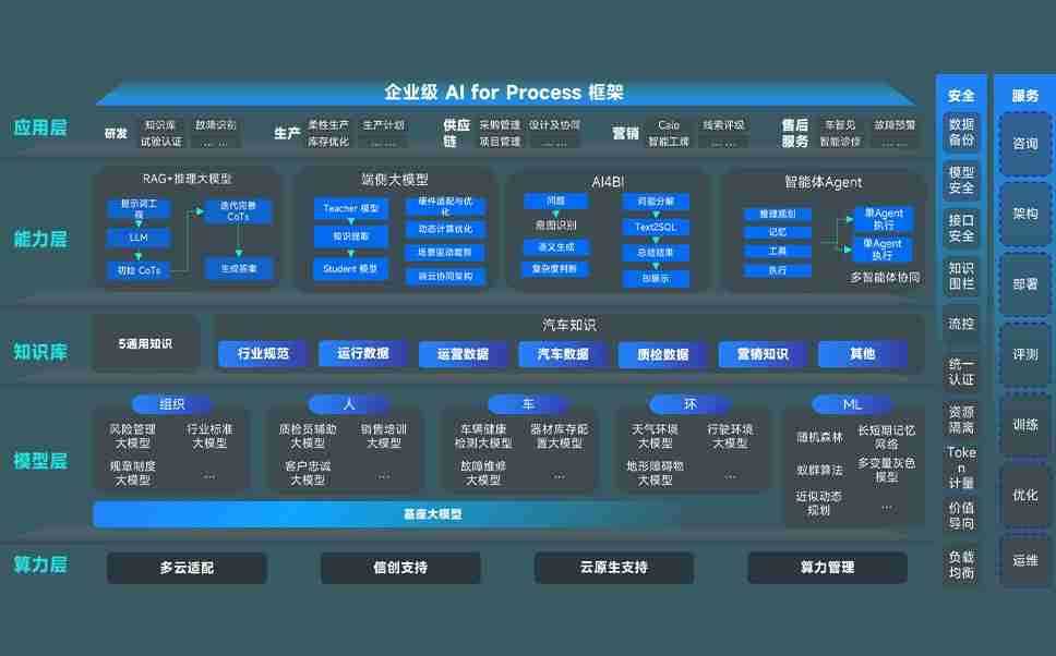 泛亚国际问学智车解决方案是一套基于AI技术的汽车行业智能化系统,,,覆盖从底层算力到顶层AI应用的全栈方案。。方案由算力层、、模型层和应用层组成:算力层,,,,方案支持多种一体机配置,,,具备云端灵活部署、、、、多云适配以及动态优化计算资源的能力;模型层,,泛亚国际问学平台版提供了企业级AI应用一站式构建与管理平台,,支持基于后训练强化技术的汽车企业专属模型的训练、、、评测和运营;应用层,,,,泛亚国际问学DeepSeek版提供包括超级员工、、智能招采、、、、智能营销、、、、智能客服、、、AI for BI等一系列解决方案,,可助力汽车行业实现数字化转型,,让管理更智能、、响应更敏捷。。。。
